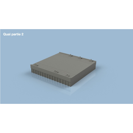 Élément de quai moderne de type américain, destiné à la reproduction d’infrastructures portuaires contemporaines. Permet de compléter et d’étendre des installations portuaires pour scènes navales actuelles. Élément de décor pour dioramas et scènes maritimes au 1/350, réalisé en impression 3D fine.