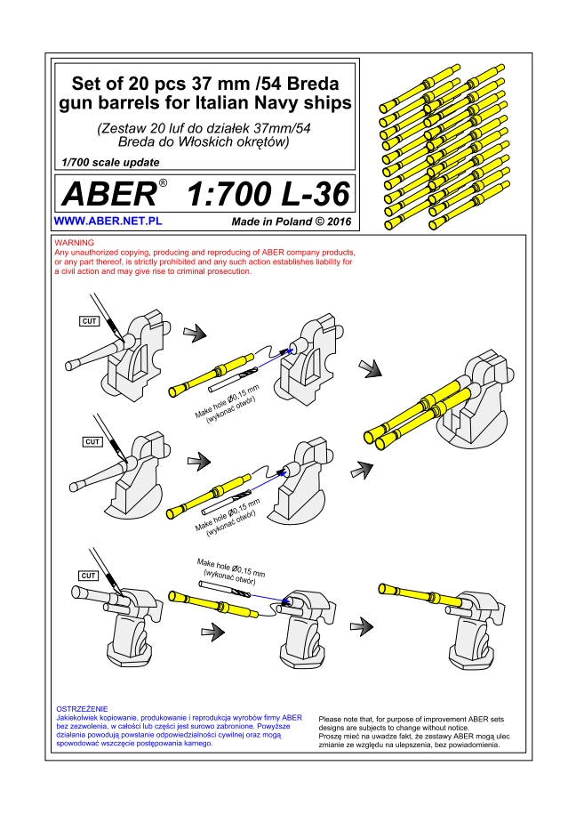 Aber S 1:700 L-036 – Canons Breda 37 mm/54Set AA pour navires de la Regia Marina italienne.