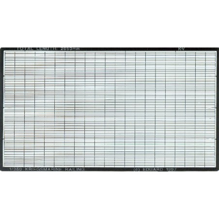 Le set Eduard 99010 est un ensemble de rambardes en photodécoupe destiné aux maquettes de navires de la Kriegsmarine. Il permet de remplacer les pièces en plastique par des garde-corps beaucoup plus fins et réalistes à l’échelle 1/350. C’est un accessoire de finition qui améliore nettement le niveau de détail des maquettes navales historiques.