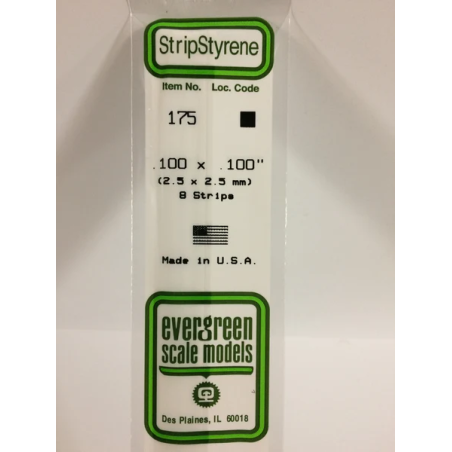 Evergreen EG175 – Bande de polystyrène blanc opaque 0,100" × 0,100"