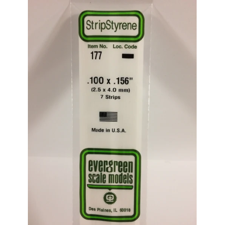 Evergreen EG177 – Bande de polystyrène blanc opaque de 0,100" x 0,156"
