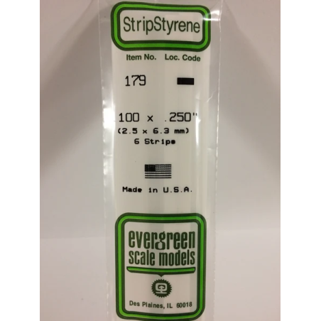 Evergreen EG179 – Bande de polystyrène blanc opaque de 0,100" x 0,250"