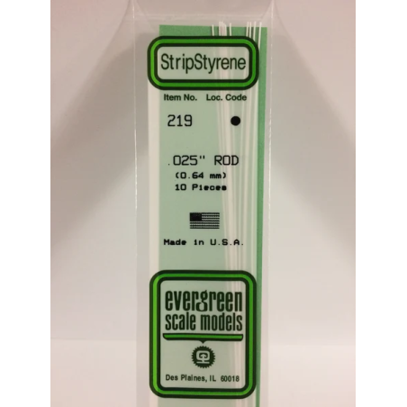 Evergreen EG219 – Tige ronde en polystyrène blanc de 0,025" (0,64 mm)