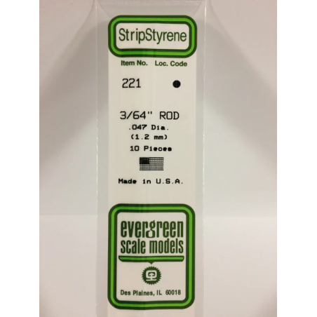 Evergreen EG221 – Tige ronde en polystyrène blanc de 0,047" (1,2 mm)