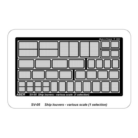 Assortiment de persiennes photogravées de tailles variées, conçu pour détailler les volets, grilles et ouvrants des superstructures de navires à l’échelle. Ces pièces de précision permettent d’ajouter un niveau de réalisme et de finesse supérieur aux maquettes navales.
