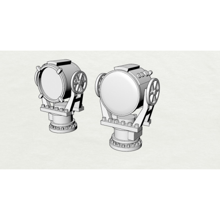 Reproduction détaillée en impression 3D du projecteur Royal Navy de 40 pouces. Réalisées à l’échelle 1/400, ces quatre pièces offrent un haut niveau de finesse, idéales pour compléter des maquettes navales et dioramas historiques.