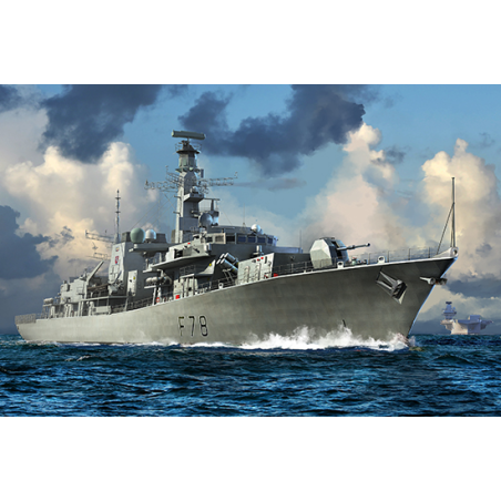 Maquette de la frégate HMS Type 23 – Kent (F78) à l’échelle 1:700, idéale pour les passionnés de modélisme naval et de navires militaires modernes.